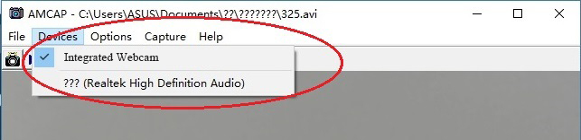 Click "Devices" on the top menu and select the "Integrated Webcam" on the dropdown list.