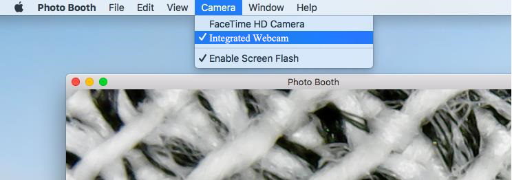 Click "Camera" on the top menu and select the "Integrated Webcam" on the dropdown list.