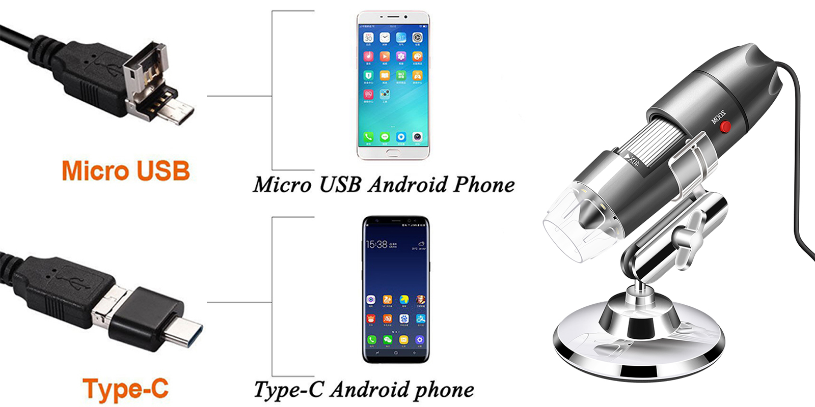 Type C phone users please use the type C adapter to connect the microscope to the type C phone.