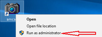Right click the Amcap and select "Run as administrator" to open the Amcap software.