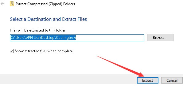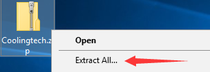 After finishing download, right-click the "Coolingtech.zip" and select “Extract All...” to extract it out.