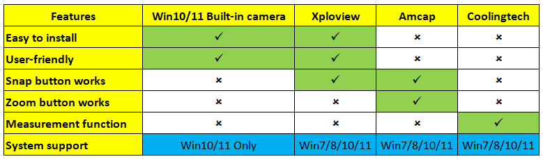 Cainda USB Microscope will automatically install default webcam (UVC) drivers when plugged into a host device. So it's compatible with any webcam app, you can choose one or more softwares below to install on your PC according to your need.