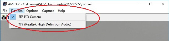 Click "Devices" on the top menu and select the "HP HD Camera" on the dropdown list.