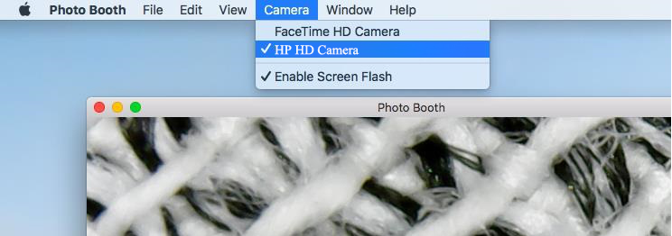 Click "Camera" on the top menu and select the "HP HD Camera" on the dropdown list.
