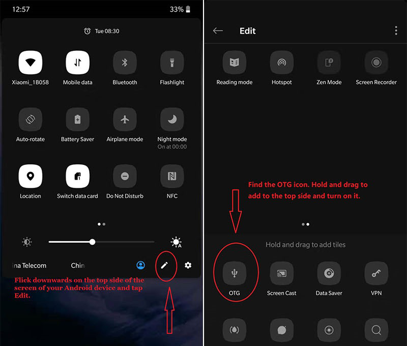 Some phones may need to turn on the OTG manually by flicking downwards on the top side of the screen.