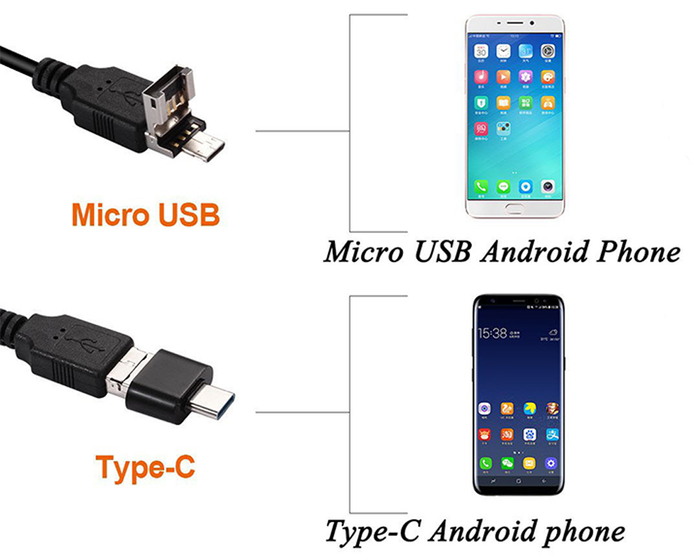 Type C phone users please use the type C adapter to connect the microscope to the type C phone.
