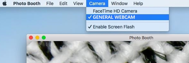Click "Camera" on the top menu and select the "GENERAL WEBCAM" on the dropdown list.